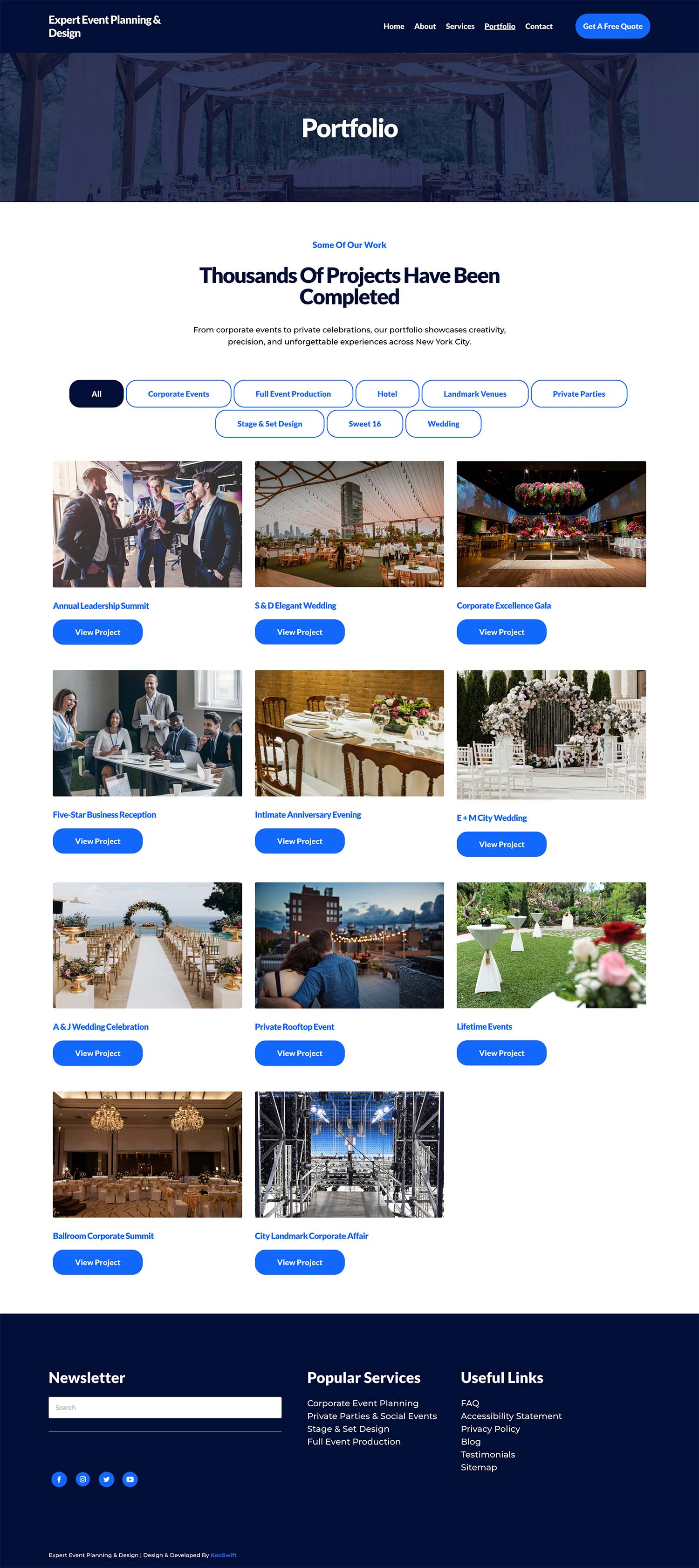 Using WordPress, we created a portfolio-style website with a filtering system, utilizing a premium theme and plugins. The client can easily add new projects through the content management system (CMS) backend.